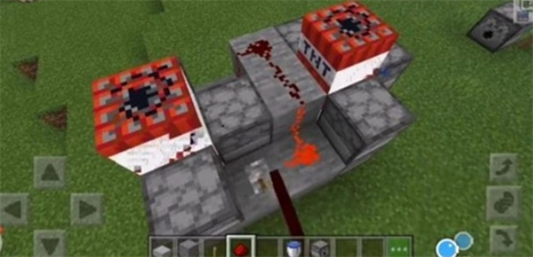 借助红石延迟机制,使后方的TNT率先引爆,其产生的冲击力能将前方的TNT推送出去。要是前后TNT同时爆炸,不仅无法实现有效的发射效果,还会直接把装置炸毁。