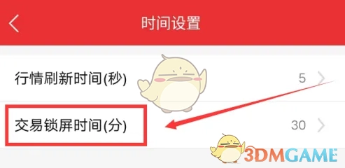 3、进入如下界面,选择【交易锁屏时间】,完成设置即可。