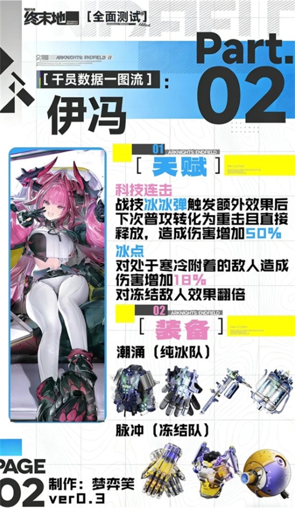 在《明日方舟:终末地》里,干员伊冯作为冰系输出核心,其高额伤害主要来自挂冰附着效果与大招释放。不过她的技能回转速度偏慢,也比较容易被敌人打断动作,所以对她进行合理培养并搭配合适的队伍就显得尤为关键。接下来,小编为大家整理了伊冯的培养方向和配队建议,助力玩家更高效地发挥她的输出潜力。