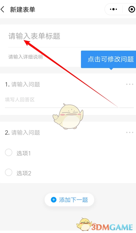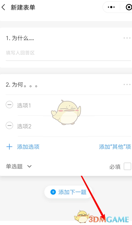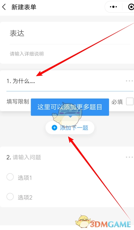 4、输入你想要提问的问题,要是问题数量较多,可点击“添加下一题” 。