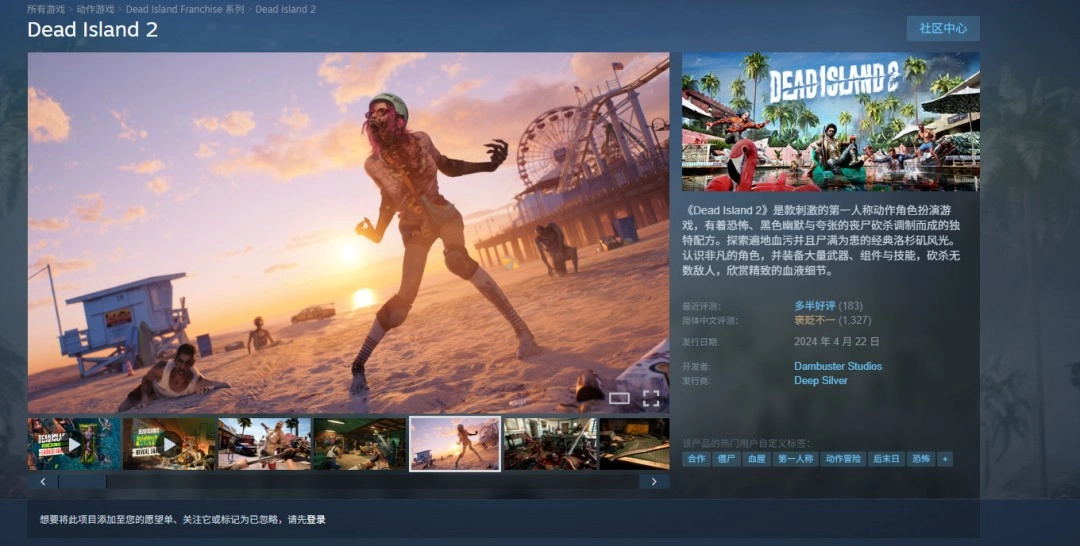 《死亡岛2》在Epic平台经历一年限时独占后,现已登陆Steam平台,当前收获“多半好评”的玩家评价。