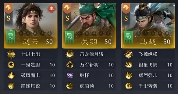 4、注意事项:关羽定位为纯辅助角色,马超与赵云负责输出,该阵容的获取难度较低,在PVP模式中属于T1梯队的守门员水平;队伍也可调整为枪兵阵容,此时需将虎豹骑替换为全军突击。