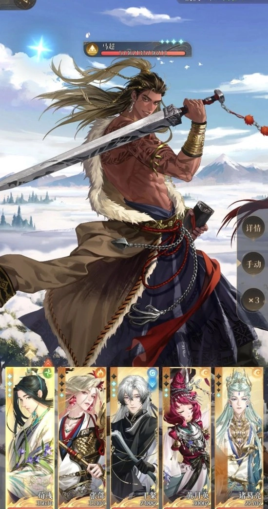 图进场时的血量,诸葛亮、张郃、王粲这几个的血量不能比我低(诸葛亮的血条在第6、10、14回合的时候会比较危险)