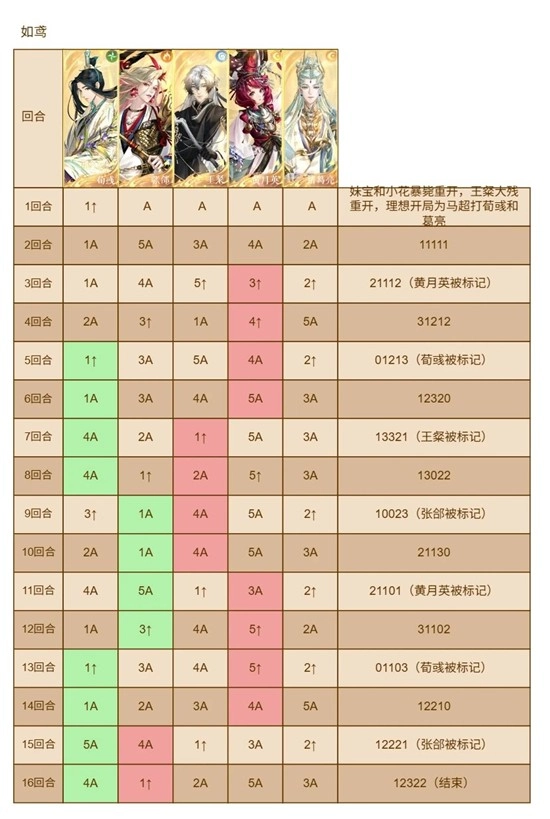 当前血条暂时安全,但要注意16回合可能会突然阵亡,需要把表格里诸葛亮和荀彧的操作对调一下。