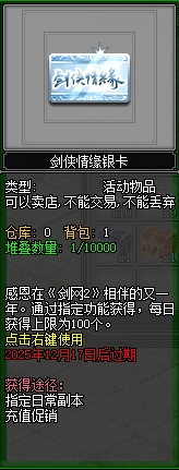 大侠在参与副本、秘境等玩法时,还能额外获得剑侠情缘银卡,每日获取上限为100张。银卡可用于兑换首饰、披风、徽章强化点券、限定外观以及装备材料。此外,还支持额外购买银卡,帮助大侠全方位提升战力与颜值!