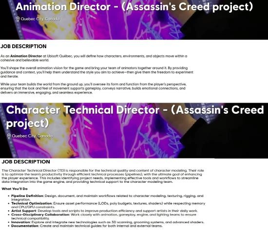 尽管这两则招聘信息都未披露太多游戏相关的具体内容,但鉴于《刺客信条:影》已经上市有段时间了,育碧魁北克工作室此刻着手规划下一款大型《刺客信条》作品,也是合乎情理的。