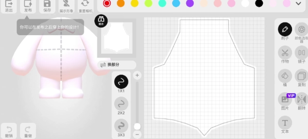 4、随后借助编辑器,便能够随心所欲地设计并打造出自己心仪的服装。