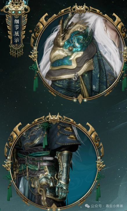 首先呀!这身衣服是以青铜鸟为主题设计的,里面蕴含着浓厚的墨门风格呢!就连整个左臂都是青铜机关打造的,配饰也都以青铜器元素为主哦!