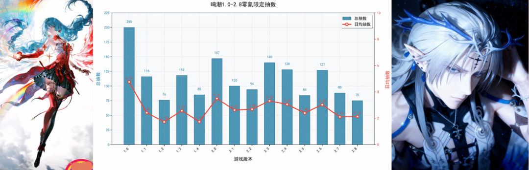 在对版本资源进行统计后,不同的“声音”开始出现:零氪玩家对2.8版本仅能获得75抽资源表示不满。因为自鸣潮2.2版本之后,零氪玩家的资源获取基本维持在80抽至120抽的区间内循环——这里的120多抽还包含了线下活动以及像提名获奖、周年庆、补偿等重要节点或节奏带来的额外资源。