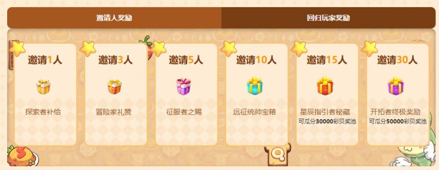 作为邀请人,每成功邀请一位回归战友,都能获得一份礼物;邀请人数达到特定数量时,还可参与瓜分数万彩贝,为你们的共同冒险筑牢后盾。活动结束后,若成功激活回归玩家身份的总人数达到对应标准,邀请人将额外获取奖励。