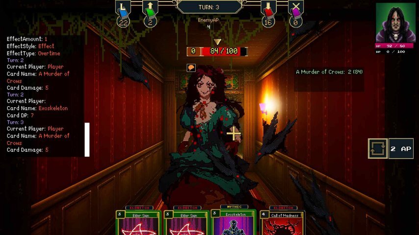 《疯狂面纱》实现了策略性与叙事性的双重进阶,在战斗进程中体悟角色内核,在角色认知里敲定战斗决策。传统RPG常需在战斗体验与故事呈现间权衡取舍,而《疯狂面纱》的战斗系统有着清晰的叙事指向——战斗是玩家洞悉主角精神困境的途径,它借助一张张象征人格碎片的卡牌,搭建起主角与外星意识得以交流的纽带。
