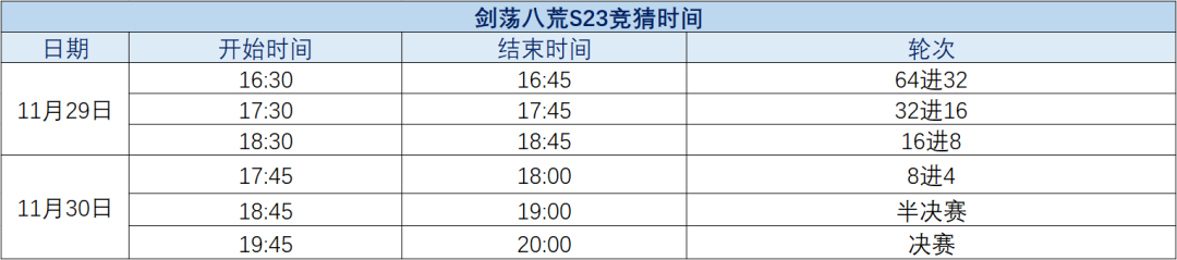 (4)16强赛事落幕之后,剑荡八荒后续赛程将取消选手分档机制,同时不再采用随机匹配对手的方式,而是依据16强对阵表,遵循常规的线性晋级规则来确定8强及后续阶段的对阵安排。
