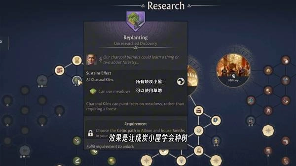 平民的公共服务解锁了圣所Sanctuary与学校Grammaticus。学校的效果顾名思义是+3知识,这可是个新属性,能用来解锁科技树——纪元系列终于也有科技树了!科技树分为经济、市政、军事三大类。瞧左边那个颜色明显不同的科技,效果是让烧炭小屋学会种树,原来关键在这儿!不过它需要阿尔比恩地区的凯尔特文化先把2级人口Smith升级完成,demo版本里暂时体验不到。科技树里还藏着不少内容:港口建筑升级、仓库升级、石砖路等都包含在内。每次最多能选8个科技,系统会自动按顺序推进研究。而这个数值代表你所有岛屿知识属性的总和,数值越高,研究速度就越快。