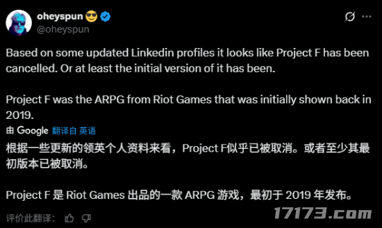 曾在2019年《英雄联盟》十周年庆典上高调亮相的ARPG项目“Project F”,近日有消息称该项目已被取消。