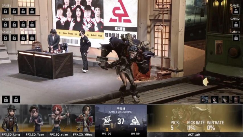 FPX.ZQ的求生者选择了魔术师、幸运儿、弓箭手、大副;ACT的监管者zz9选择了“跛脚羊”。(BAN古董商、先知、木偶师、咒术师)