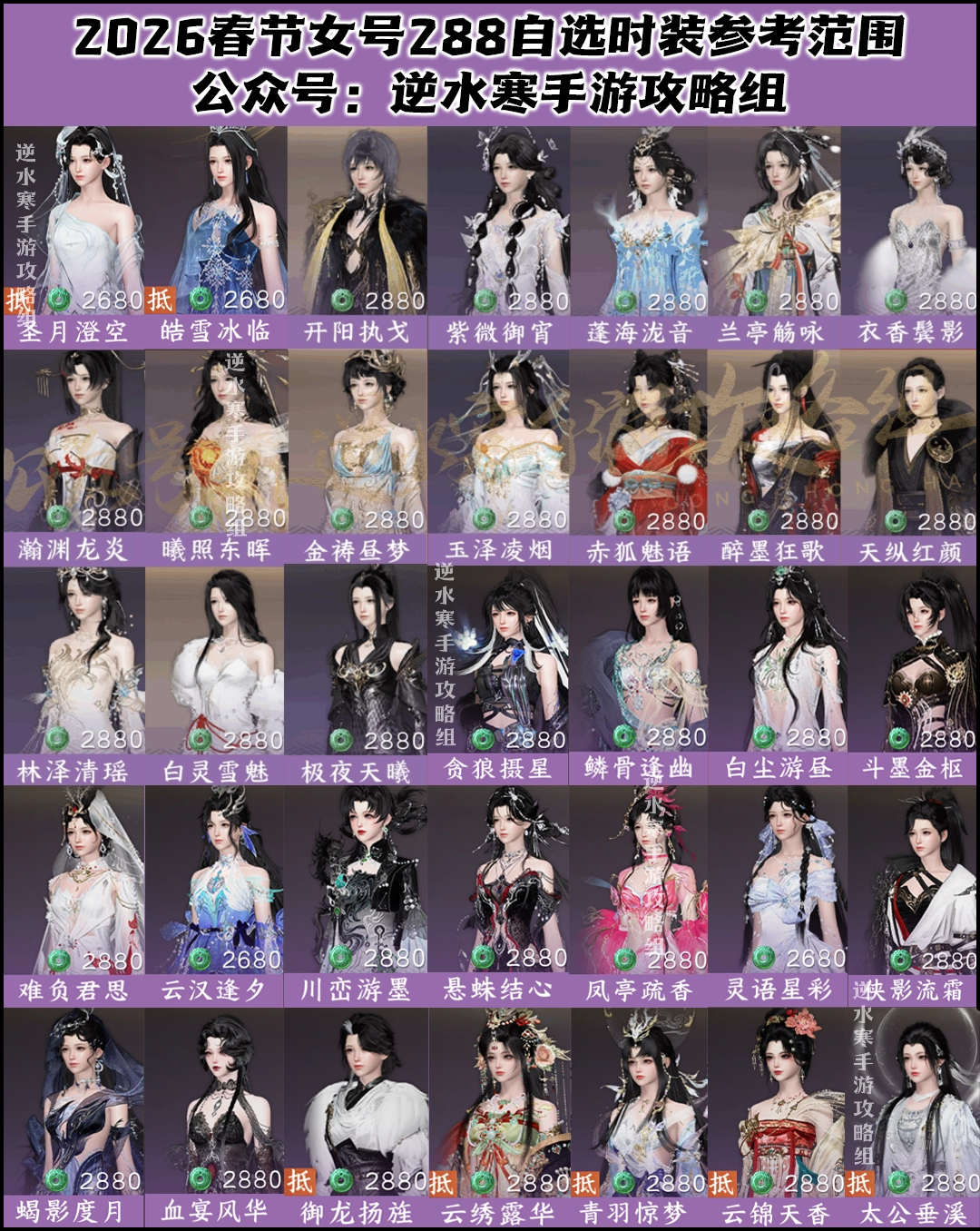 以2025年春节返场范围作为参考,2026年春节自选288皮肤对比2025年周年庆新增的时装共有以下6款:
