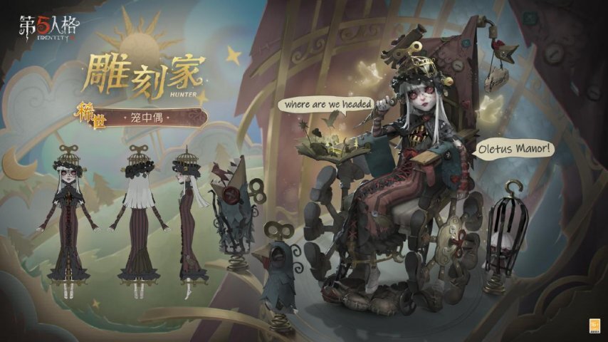 囚笼困局,挣脱束缚。网易首款1V4非对称竞技手游《第五人格》【稀世时装】雕刻家-笼中偶将于11月27日正式登陆商城!金笼摇摇晃晃,小皮鞋锃亮发光。小主人曾说爱我,却剪下我的翅膀。鸟儿衔来钢铁芯,轻轻放在他的头上。抛下金丝笼与小皮靴,一心追逐月亮的方向。旧阁楼里叮当作响,猜猜是谁在摇铃铛?