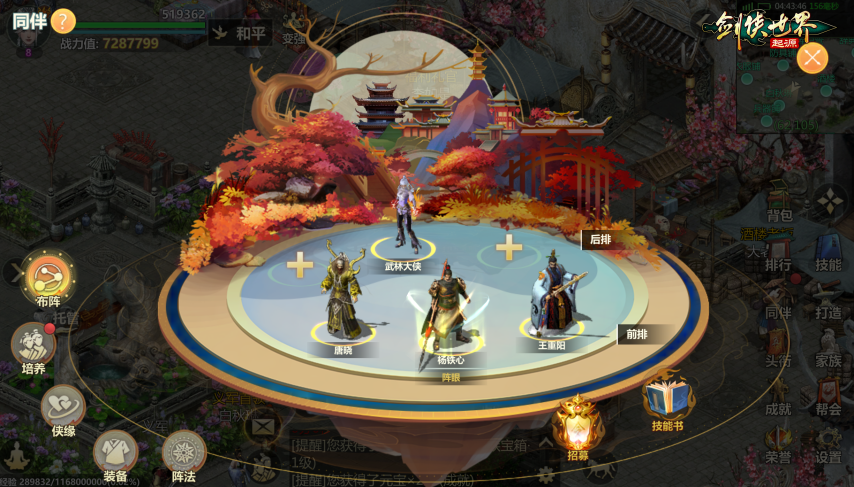 新同伴登场的同时,全新的“同伴阵法”系统也同步开启。在等级达标的服务器里,各位大侠最多能同时安排五位同伴上阵。以阵眼为核心进行布阵,不仅能为大侠带来基础属性的提升,还有机会触发随机的属性增益效果,助力大侠的功法修为快速精进,在激烈的武林角逐中抢占优势地位。