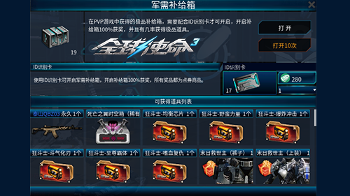 军需补给箱是《全球使命3》里不可或缺的重要元素,始终承载着玩家对强力装备和稀有道具的热切期盼。它不仅为玩家提供了多样的游戏资源,更是提升战斗力、展现个人风格的重要方式。玩家只需通过简单操作就能开启军需补给箱,有机会获取武器、芯片、僚机等各类珍贵道具。这些道具不仅能大幅增强玩家的战斗能力,还能让玩家在战场上拥有与众不同的优势和体验。