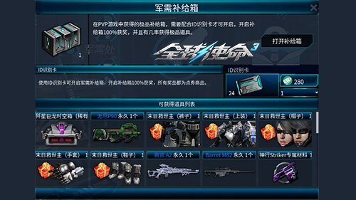 军需补给箱是专门为激励热爱PVP对抗的玩家所设立的奖励机制,凭借“低门槛、高回报”的特点,成为玩家提升战力的重要途径。箱内包含永久武器、稀有机友、专属芯片等多种战略资源,既能助力新手玩家快速获取起步装备,也能帮助资深玩家弥补战术短板,全面覆盖战斗各方面需求。补给箱默认处于加密状态,需使用“ID识别卡”解锁,该道具可在游戏商城购买,也能通过日常活跃度奖励免费获得。