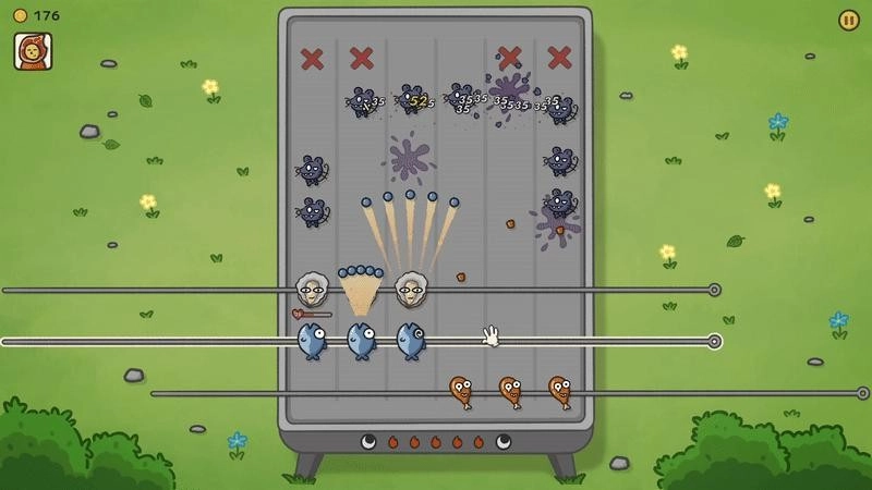 *战斗界面 - 拖拽烤串抵御鼠鼠进攻*