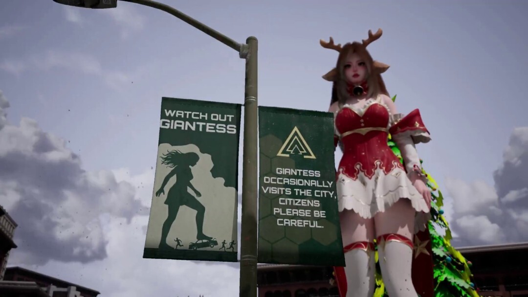 视频里,穿着红白配色节日短裙和白袜的女巨人在雪夜的都市里行走,镜头对她足部的特写以及仰视的视角,把体型上的巨大反差和强烈的视觉冲击力都展现得十分透彻,很快就在玩家社群里引起了大范围的关注。