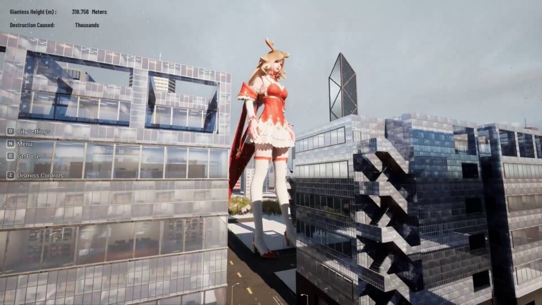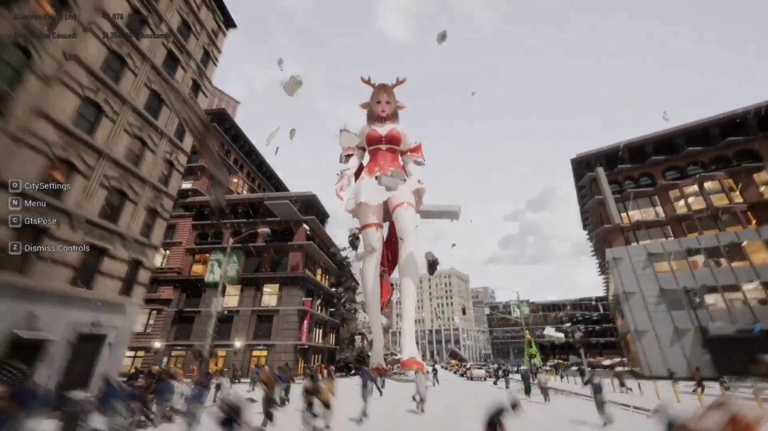 本作的核心玩法聚焦于“体型与破坏”这一主题。玩家既可以化身为身形伟岸的女巨人,在广阔的城市场景里随意漫步、与环境互动乃至进行破坏行动;也能够转换视角,成为在巨人脚边仓皇逃窜的微小市民,感受别样的生存与躲避的趣味。