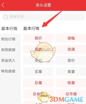 3、进入表头设置页面,选中【基本行情】并勾选就行。