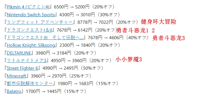 本次活动主推的优惠游戏如下: