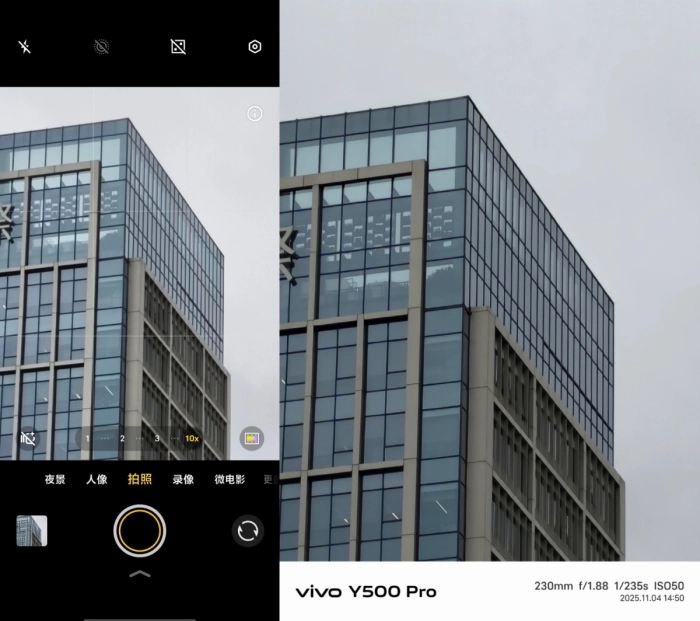 影像表现上,vivo Y500 Pro是此次升级力度最显著的部分。其主摄选用三星HP5 2亿像素超大底传感器,具备1/1.56英寸的感光面积,相比Y300 Pro+提升了1.56倍,进光量更为充沛,暗光环境下的拍摄效果也更优异。前置镜头则搭载3200万像素高清镜头,值得一提的是,这是vivo Y系列首次应用自研的OIS超级防抖技术,能显著增强拍摄时的稳定性,无论是在哪个焦段进行拍摄,都可以得到清晰且细腻的画面成像。