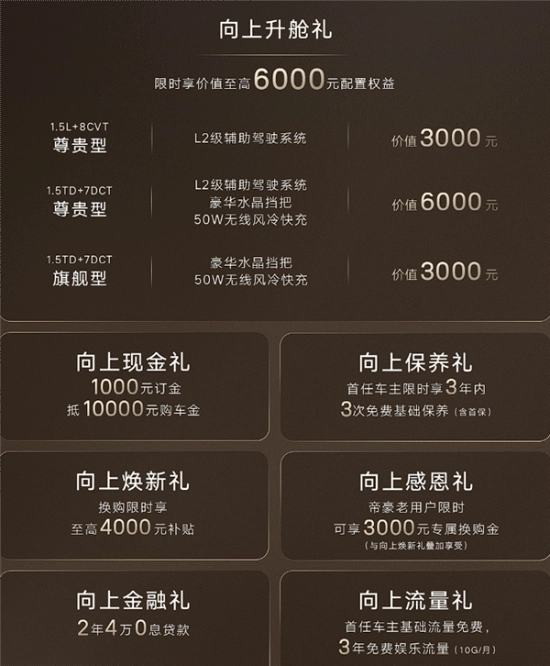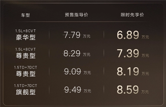 刚刚,全新一代吉利帝豪开启预售,此次共推出四款车型,官方指导价区间为7.79万至9.49万元,同时还推出了限时先享价,价格区间为6.89万至8.59万元。