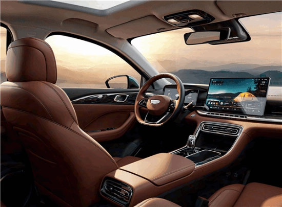 车内采用液晶仪表盘搭配14.6英寸悬浮式中控屏的组合设计,车机系统搭载Flyme Auto智能座舱,并且首次在帝豪家族车型中配备了水晶电子档杆。