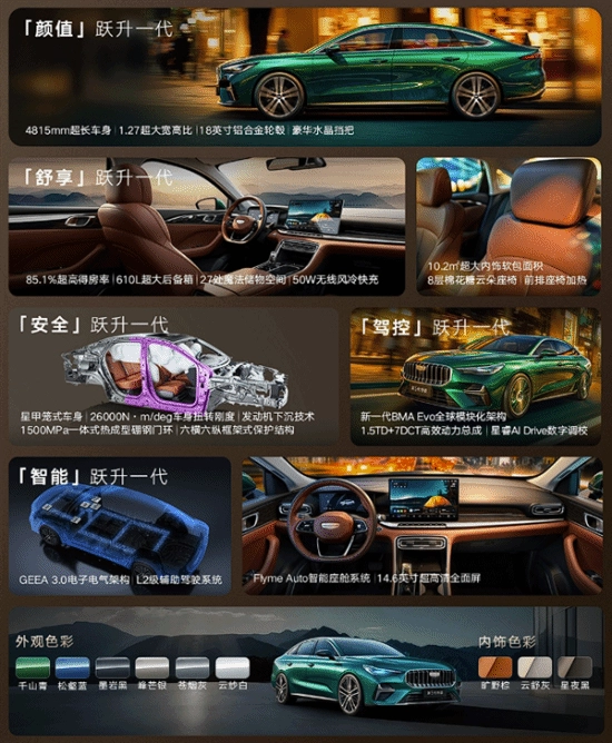 新车采用吉利4.0家族设计语言,中网、大灯、线条均有调整,相比现款车型具有颠覆性的进步。