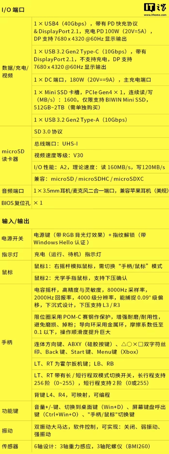 IT之家附上了这款掌机的详细参数,具体内容如下: