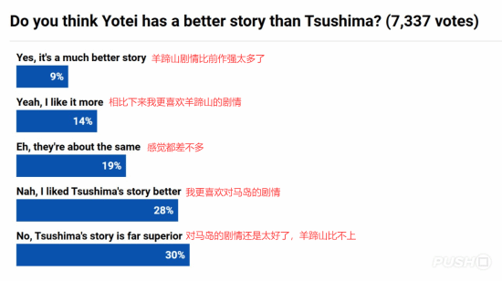 不过,在剧情方面,玩家们的看法更偏向原作。有58%的玩家觉得仁的冒险故事更具吸引力,仅有9%的受访者认为续作的剧情明显更出色。