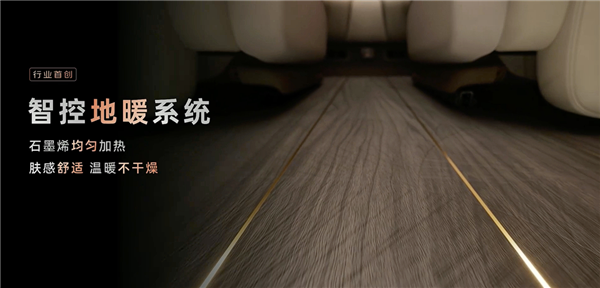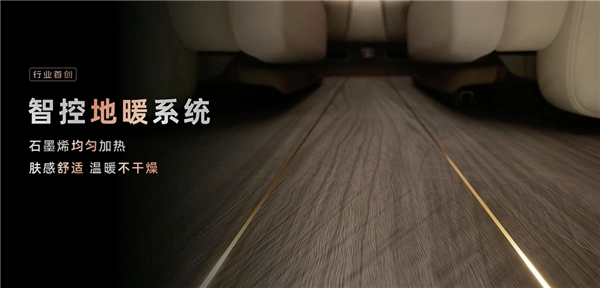 更有趣的是,该车还搭载行业首创的智控地暖系统,号称石墨烯均匀加热,肤感舒适,温暖不干燥,非常适合即将到来的冬季使用。