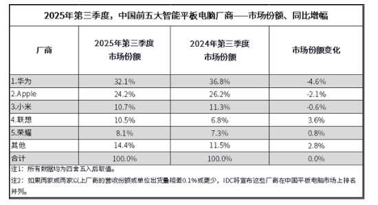 快科技于11月17日报道,近日,国际数据公司(IDC)公布了2025年第三季度中国平板电脑市场的季度跟踪报告。