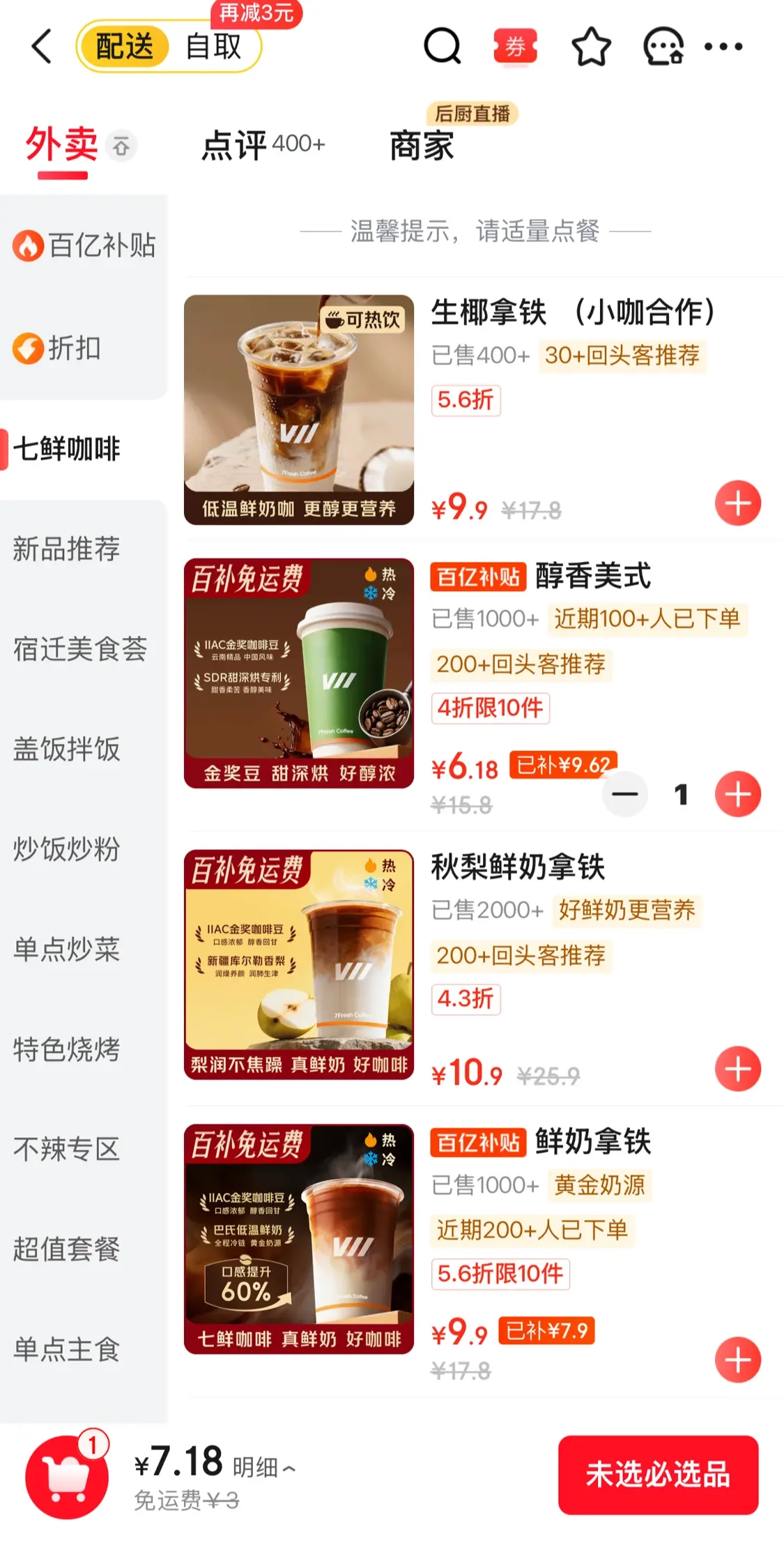 京东官方称,七鲜咖啡注重“严选标准”和“安心健康”,从平台数据来看,部分单品销量已达数千笔,还得到了回头客的推荐。
