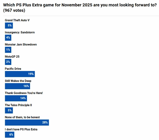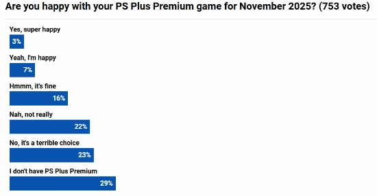 然而,根据外媒Push Square的调查结果,这份游戏名单并未获得玩家的认可,有超过四成(40%)的Extra订阅用户对本月的游戏阵容感到失望甚至极度不满。
