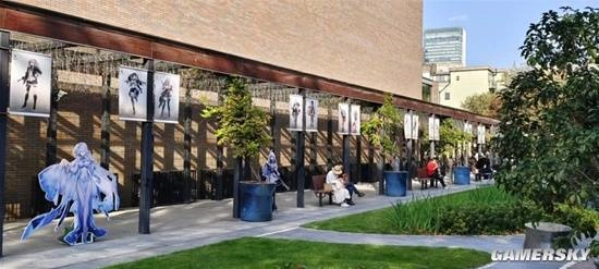 场馆外面的林荫走廊,立柱旁边垂下的人物旗帜和角色立牌宣告着今天音乐厅的主角。