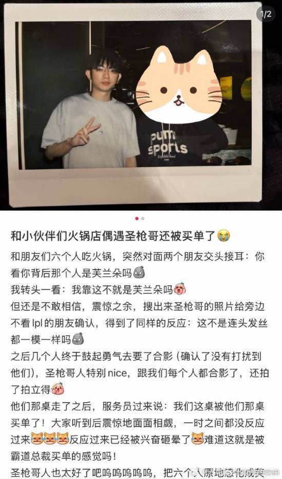 玩家们在火锅店意外遇到了AL战队的上单选手圣枪哥Flandre,确认对方身份后,他们礼貌地提出了合影请求。Flandre不仅痛快地答应了,还主动用拍立得为每个人拍照留作纪念。更让大家惊喜的是,等到结账的时候,服务员告诉他们,这桌的账单已经被Flandre提前结清了。