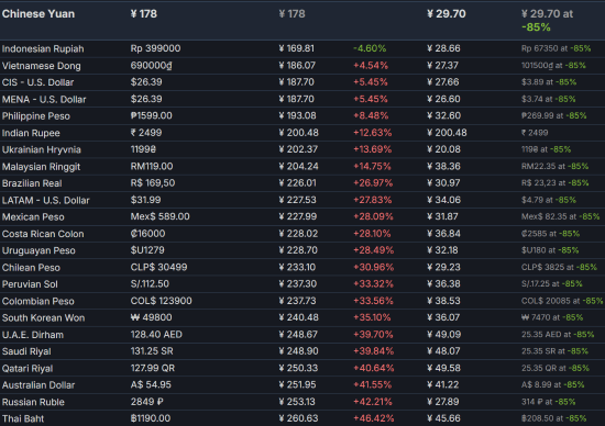 《海贼无双4》在国区的售价为178元,这一价格在全球范围内处于第二低的水平,而价格最低的区域是印度尼西亚区,该区域的售价为169.8元。