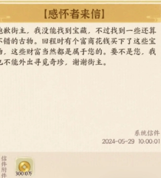 3、通宝赞助:若系统提示通宝不足,游戏里的书简珍藏区域会提供通宝赞助服务。玩家需用通宝进行购买,每天至少能购买三次,每次购买的间隔时间约为五分钟。