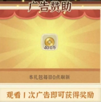4、广告赞助:在市集-广告区,玩家在观看广告后可获得40万通宝。