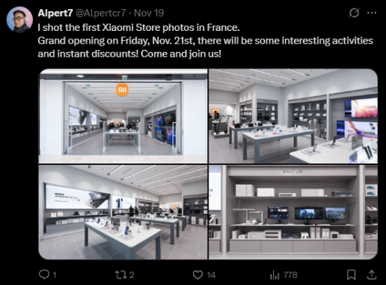 日前,小米法国副国家经理“产品逸飞”宣布,小米之家重返法国市场的首家门店已正式开业,选址在巴黎的Créteil Soleil购物中心。