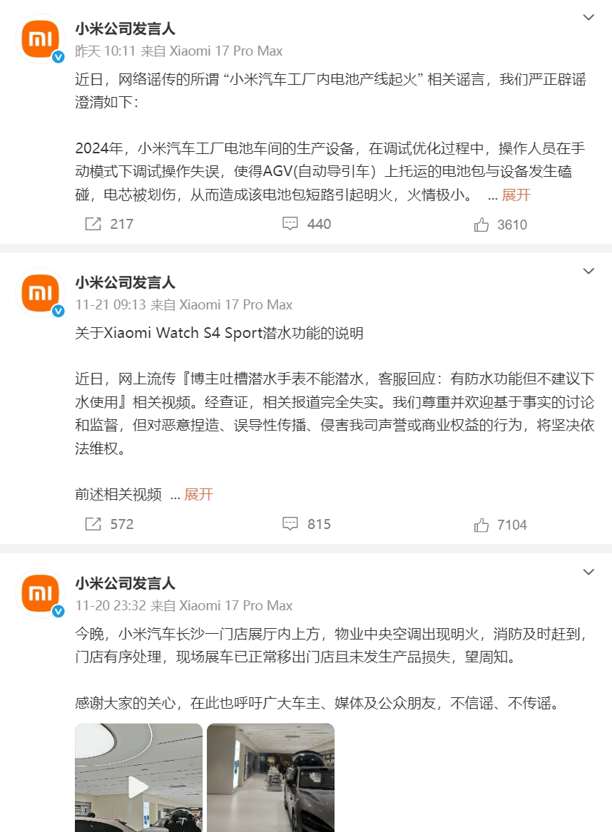 所以小雷觉得,一味逃避绝非明智选择。尤其是在谣言不断出现的情况下,如果反应不够迅速,后果只会愈发严重。小米最近频繁回应那些所谓的“事件”,或许正是出于这个原因。