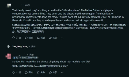 部分玩家在帖子里回复说,这款游戏大概率不会再更新了,不过也不排除作者和开发团队正在开发下一款游戏的可能。