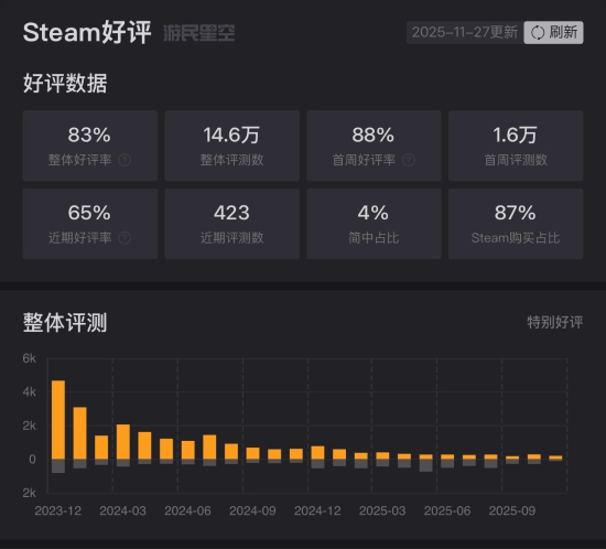 《Battlebit》曾于2023年开启抢先体验,游戏推出后迅速收获数万条好评,最高同时在线人数甚至超过了八万人。尽管游戏的更新进度较为缓慢,但它在游民商城目前依旧保持着83%的好评率。