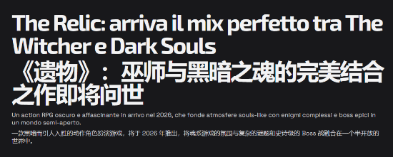 本作受到了外媒spaziogames的关注,该媒体为此发表了一篇专栏文章,将其评价为“《巫师3:狂猎》与《黑暗之魂》三部曲的完美融合”,以下是对这篇文章的简要翻译整理内容: