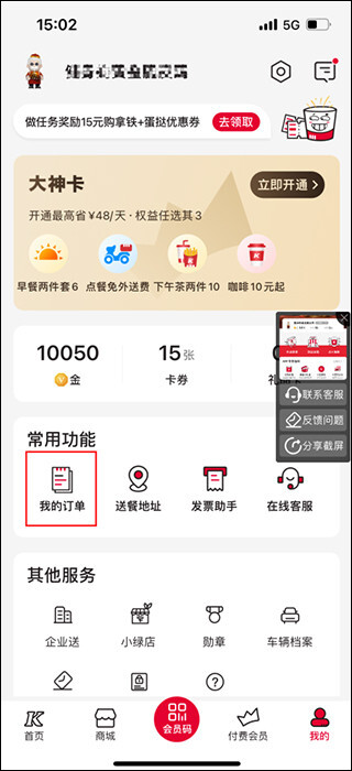 进入个人中心页面后,在常用功能列表里找到“我的订单”选项并点击它。